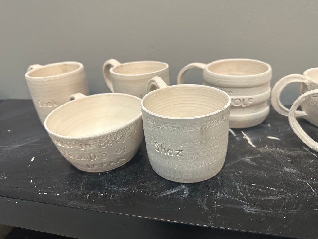 I recently made quite a few mugs for my workmates. One went a bit wrong (because I managed to bash the handle off it when it was leather hard :oS – but the others made it through! Here’s a quick vid of the kiln opening…